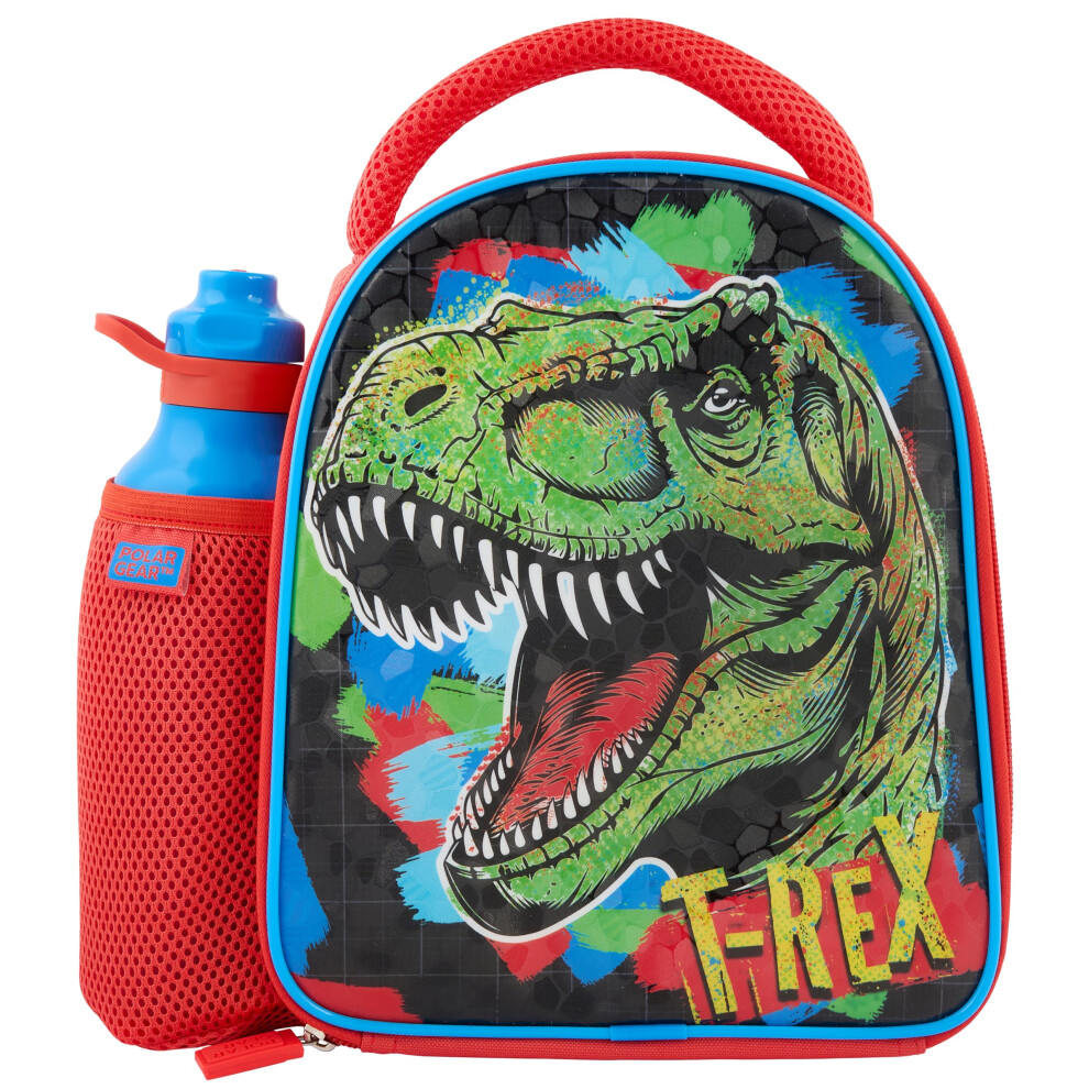 Polar Gear Dino T-Rex Insulated Kids Lunch Bag Holder and 600ml Water Bottle, Polyester, 600 milliliters, Red