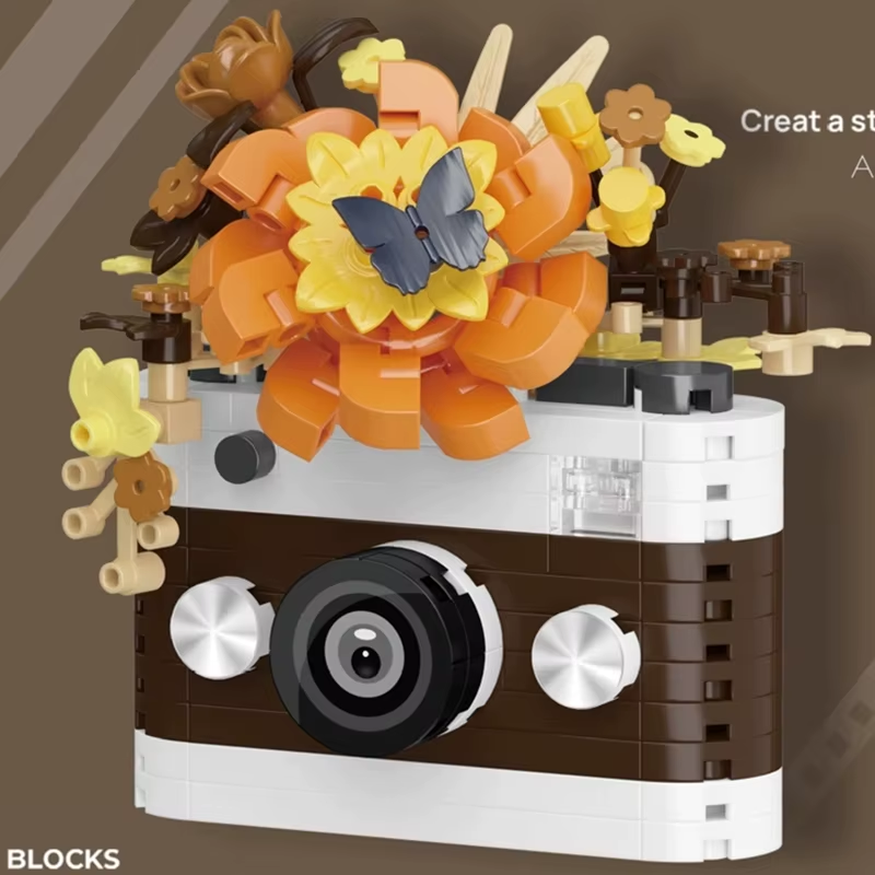 NEW DIY Camera Mirror Flower Film Retro Polaroid Rose Laurel Building Blocks Kit