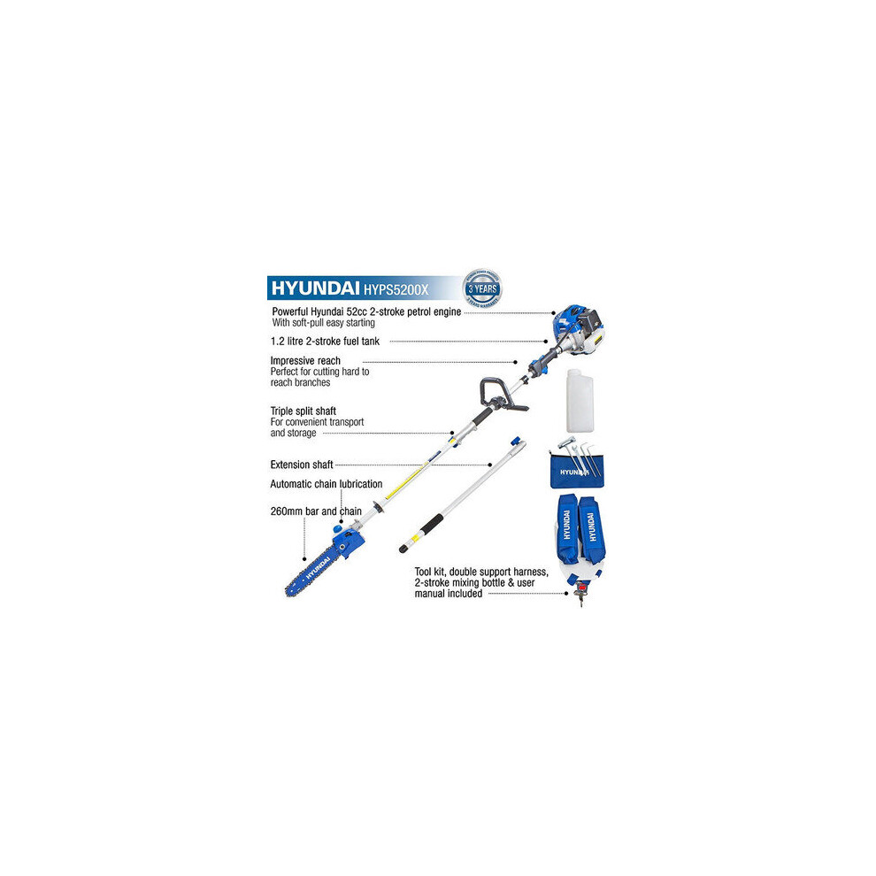 Hyundai 52cc Long Reach Petrol Pole Saw/Pruner/Chainsaw | HYPS5200X
