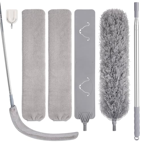 wlich Feather Duster with Extension Pole, Bendable Microfiber Head, Household Cleaning Set for Ceiling Fans, Furniture, Windows, Cobwebs, High and Low Areas, No Ladder Needed