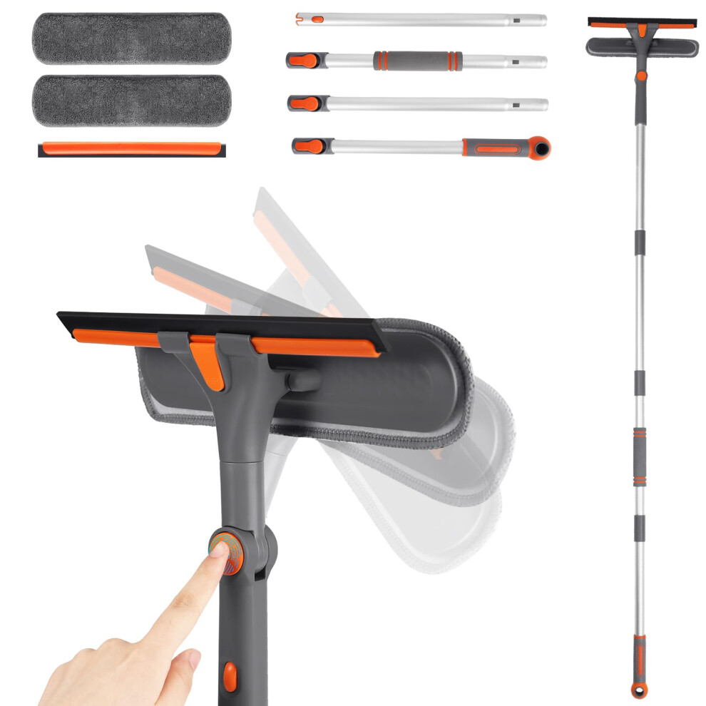105 Inch (2.66M) Window Squeegee Cleaning Equipment, 2 in 1 Window Cleaning Kit with 7 Extension Pole,Extendable Window Cleaner Tool with Bendable Head for Indoor Outdoor Windows Car Glass