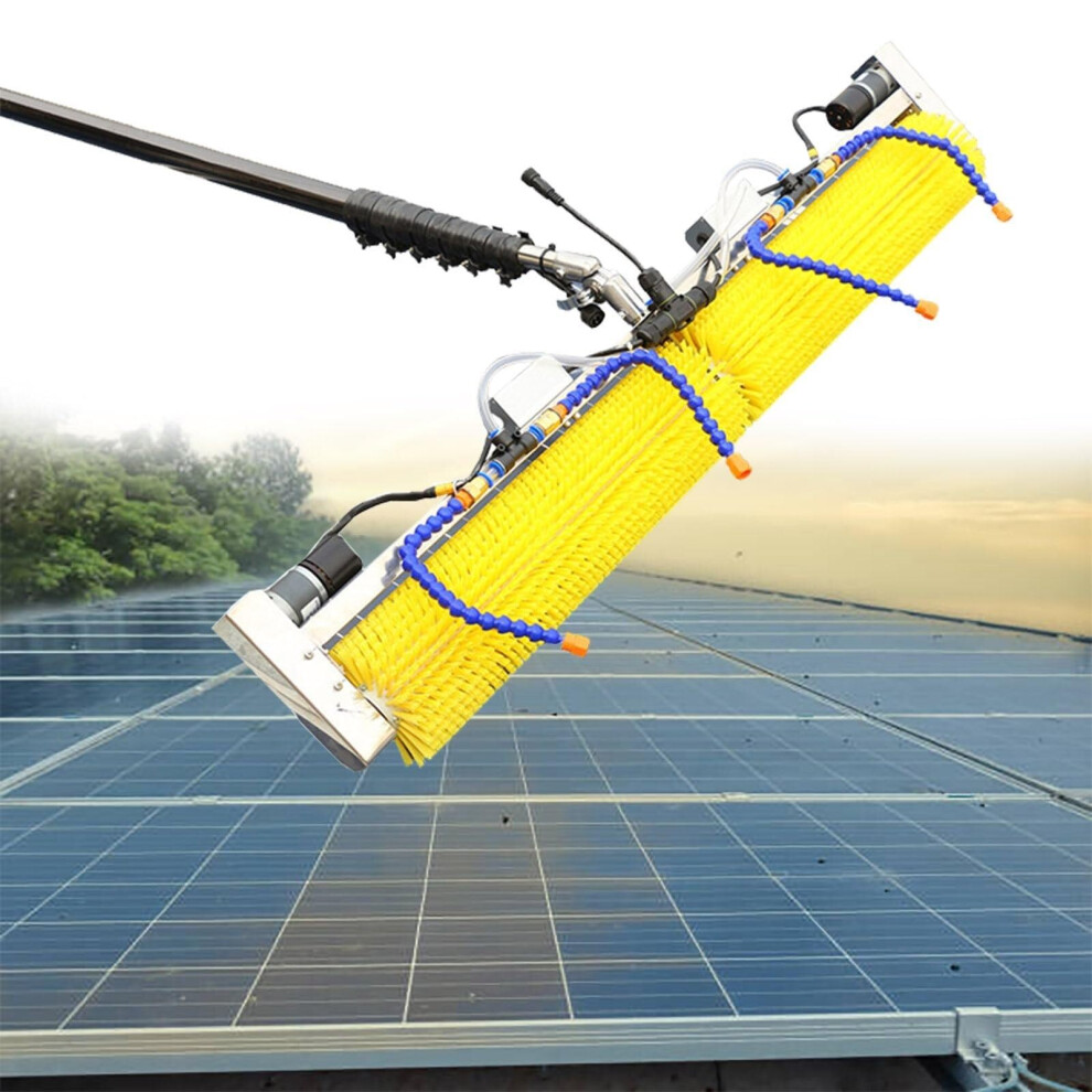 Solar Panel Cleaning Kit with Telescopic Water Fed Pole, Dual Spray Brush for Windows and Vehicles, 9m Faucet Model