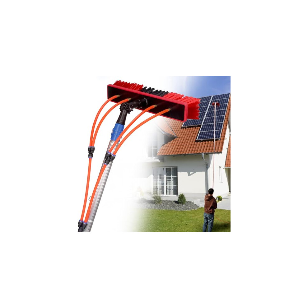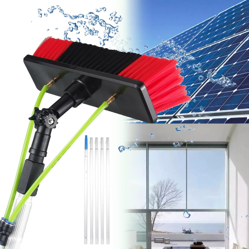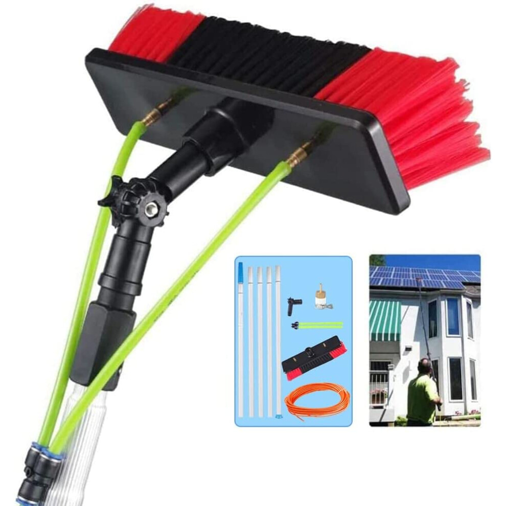 Water Fed Telescopic Brush Window Cleaning Pole Kit For Windows And Solar Panels, 5M/16.4Ft, 30cm Brush Head