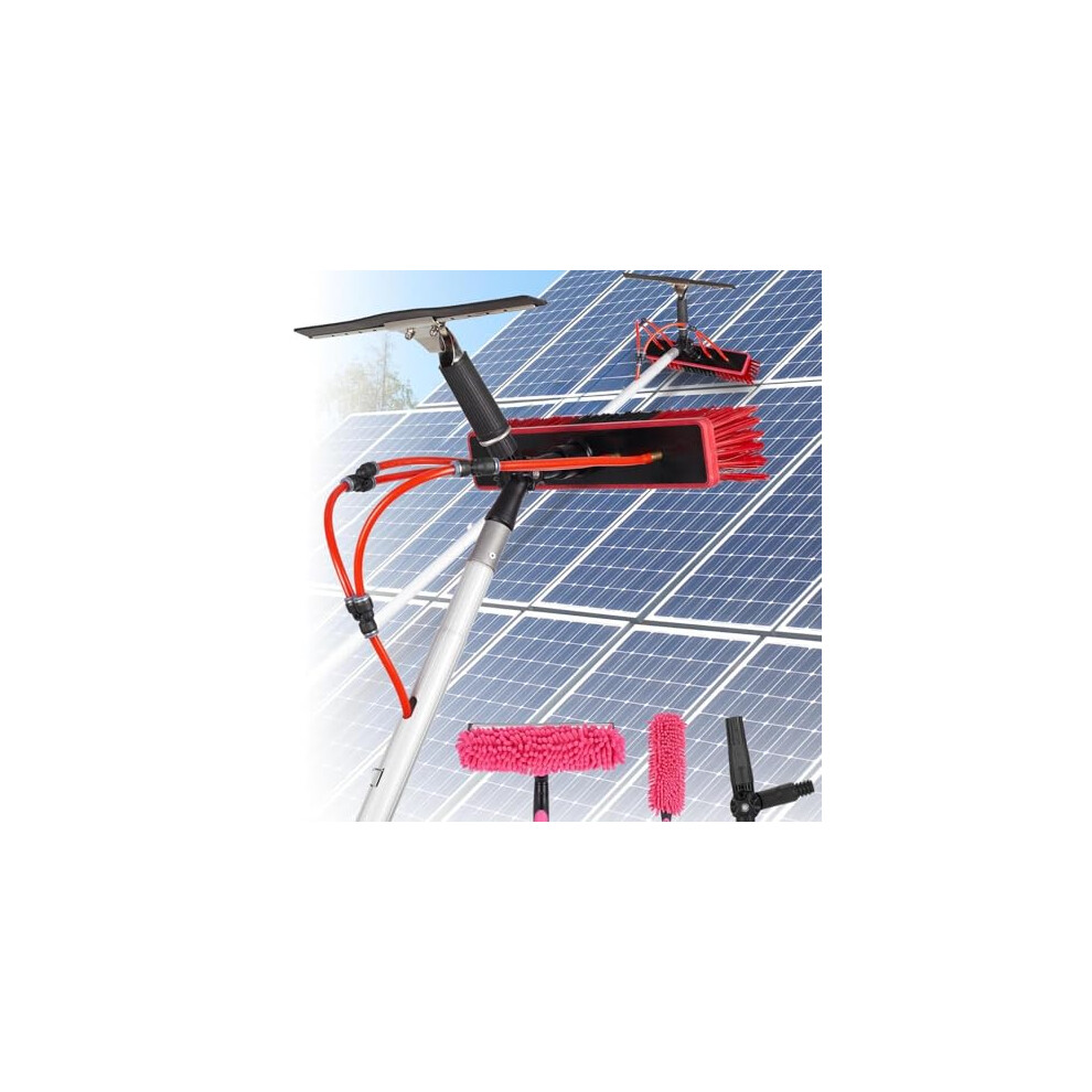 Solar Panel Cleaning Kit with Adjustable Water Fed Pole, Extendable Brush for Windows and Roofs