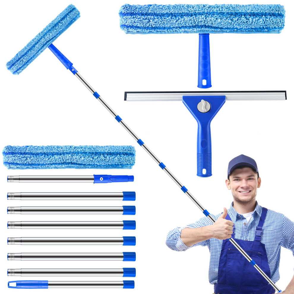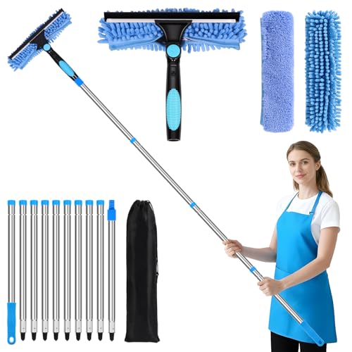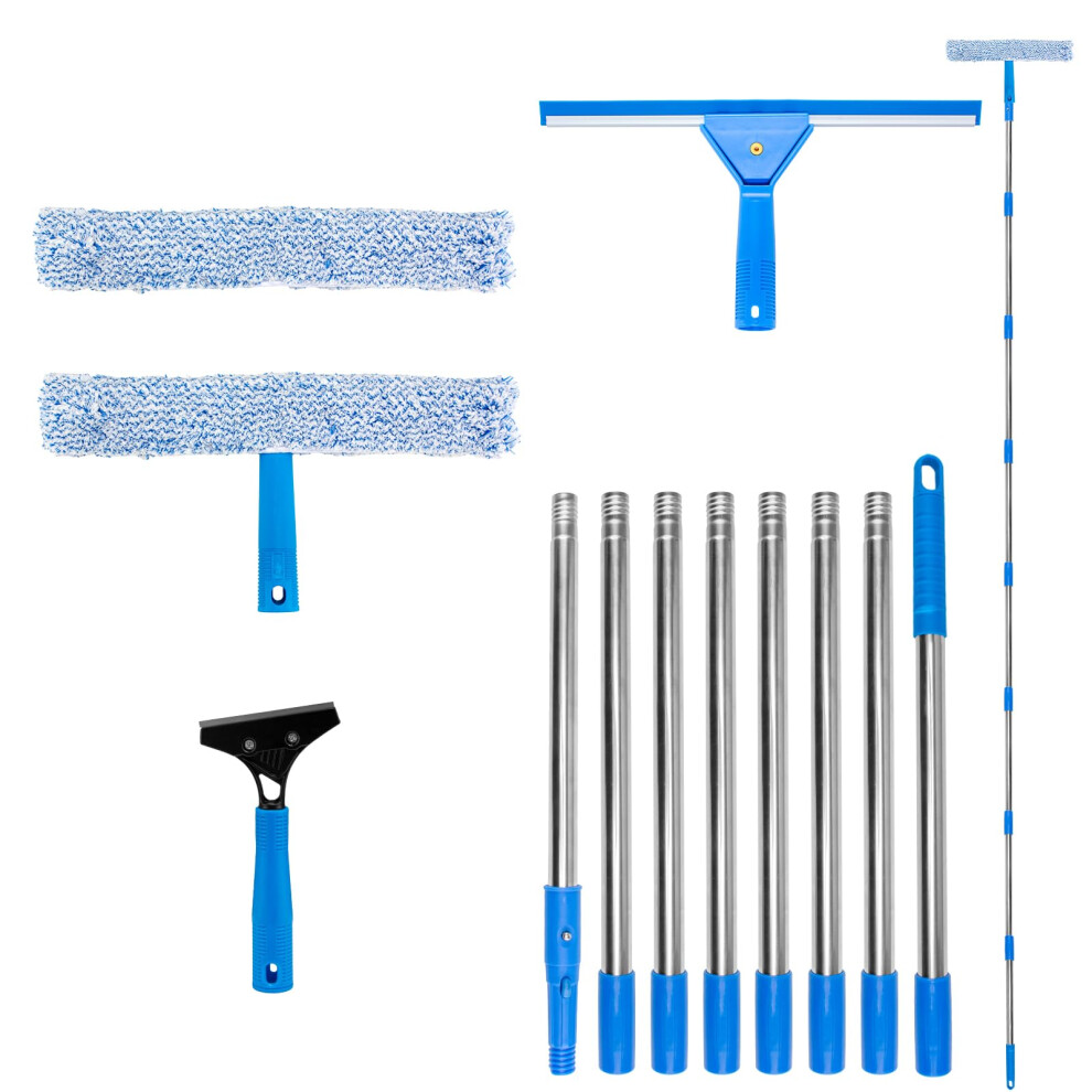 10Ft (3m) Window Cleaning Equipment, Window Cleaner Kit with Extension Pole, Window Squeegee & Microfiber Scrubber Washing Kit for High Windows, Shower Glass, Car, RV