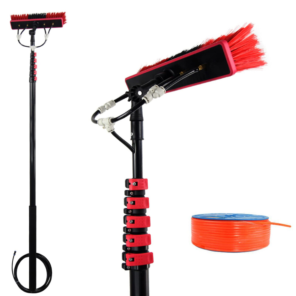 24FT Water Fed Window Cleaning Pole Kit with 2in1 Head for Windows and Solar Panels