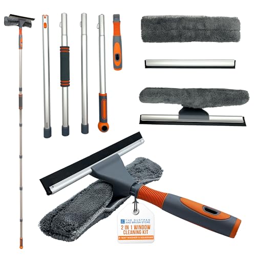 DEKTON 4-in-1 Telescopic Window Cleaning Kit with 8ft Long Reach Pole, Bendable Duster, Squeegee & Scrubber for High Windows, Ceilings & Conservatories