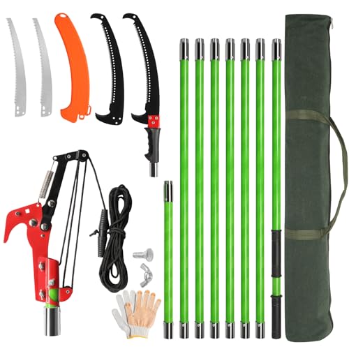 SUNORCHID Pole Pruning Saw 27 Foot Long Handle Adjustable Length, Tree Pruner Loppers Reach for Palm Oak High Branches ;with Carry Bag and