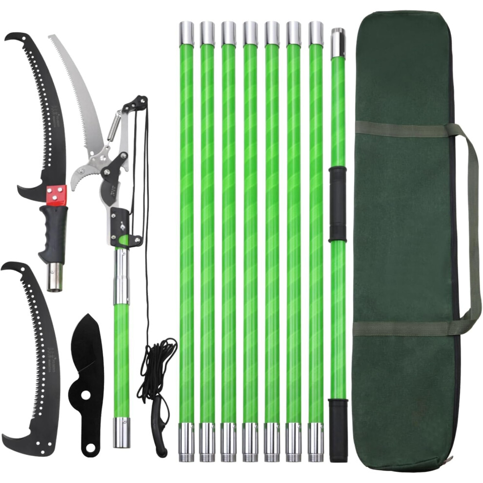 Outopee 26FT Pole Pruning Saw, Manual Pole Saw Long Handle Pruner Set, Telescopic Tree Trimmers Garden Tools with Sharp Blade, Scissors, Carry Bag for Pruning Palms and Shrubs High Branches, Green