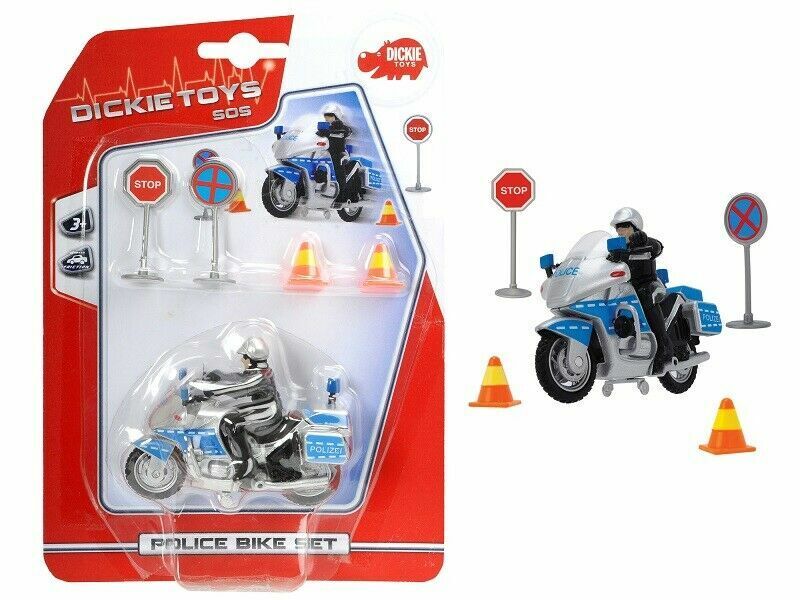 Dickie Toys Police Bike Play Set - Metal Friction Diecast Birthday Party Filler