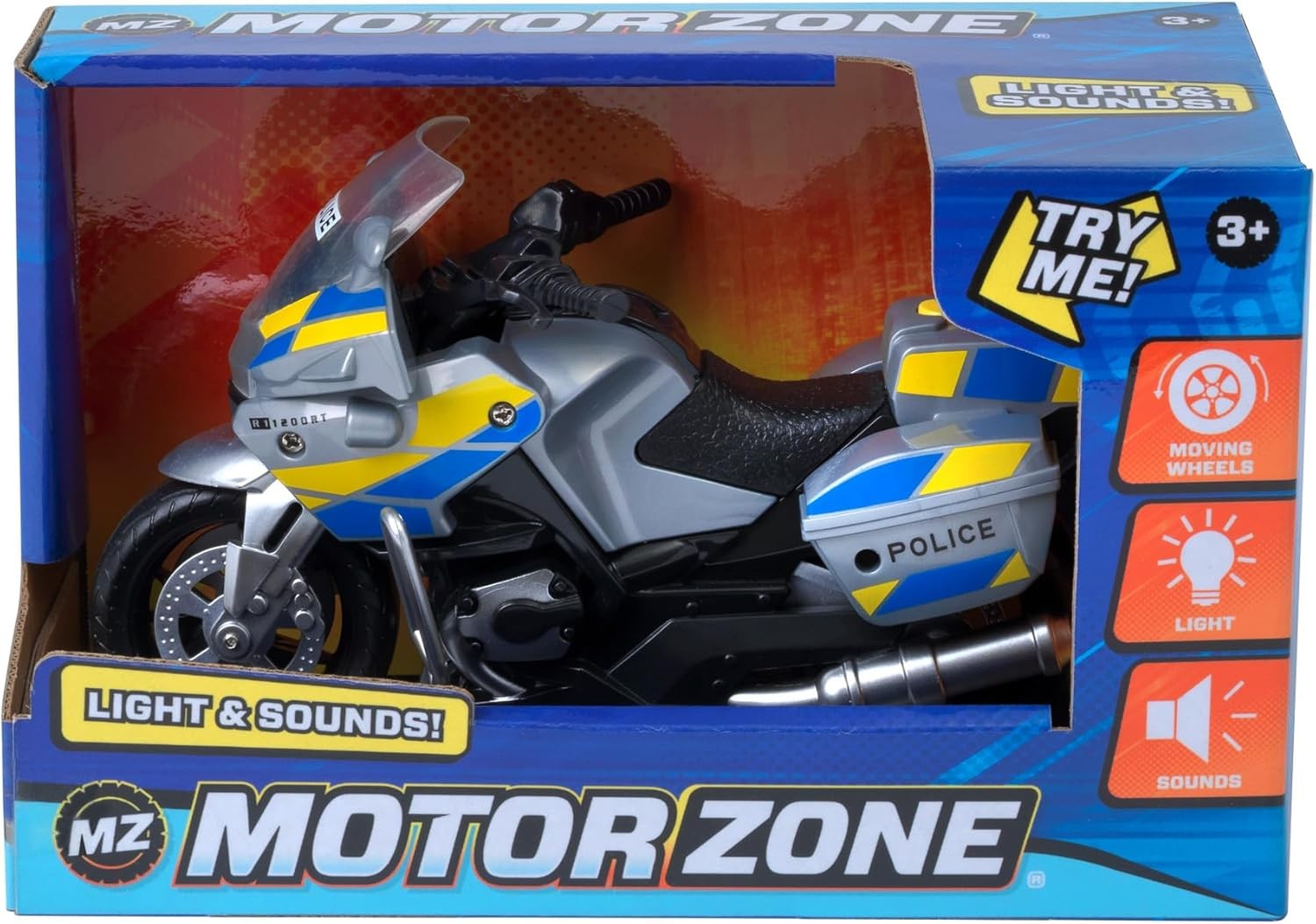 Motor Zone John Adams Age 3+ | 18cm Police Bike with lights and sound | Kids' Play Emergency Vehicles | Batteries included | Ages 3+, Black