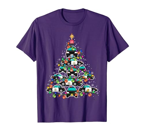Xmas Tree Police Car Xmas Lights Santa Police Car Driver T-Shirt, Men, Purple, Small