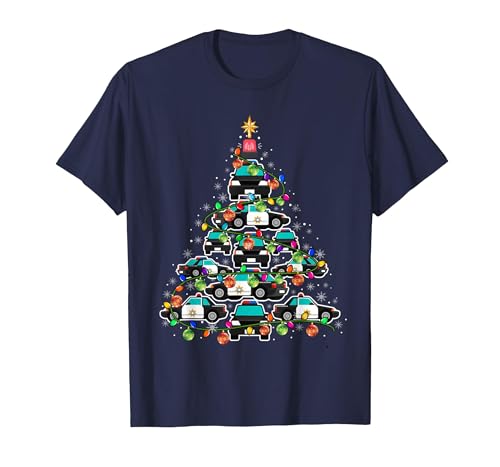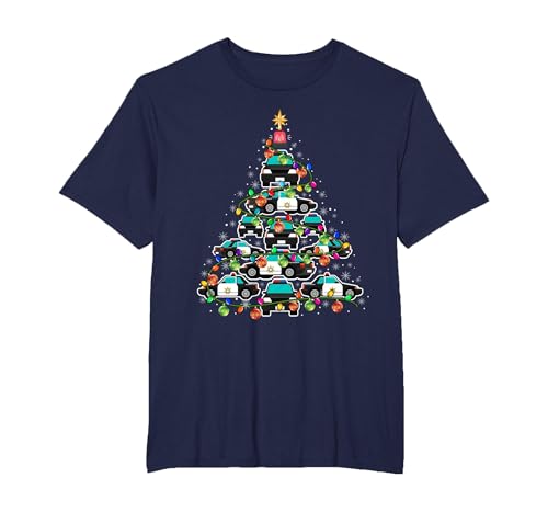 Xmas Tree Police Car Xmas Lights Santa Police Car Driver T-Shirt, Men, Navy Blue, Small