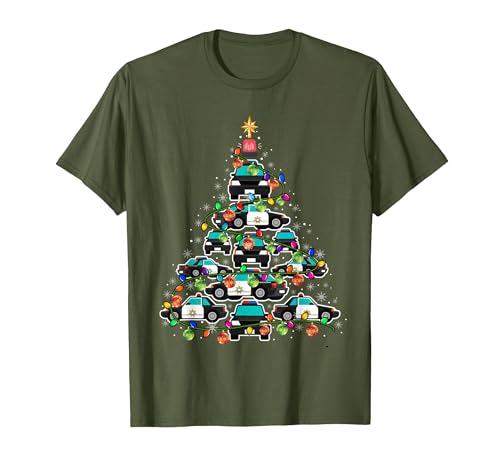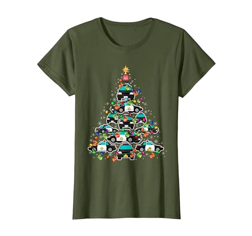 Xmas Tree Police Car Xmas Lights Santa Police Car Driver T-Shirt, Women, Olive Green, X-Large