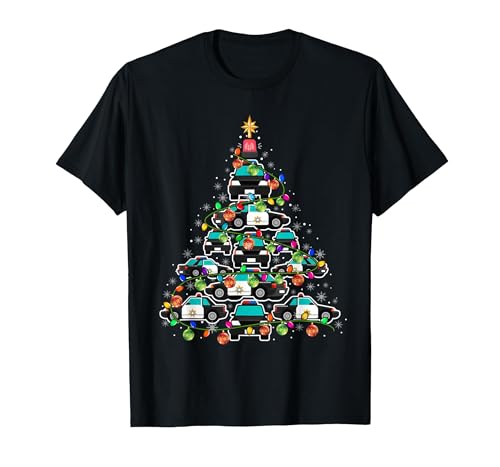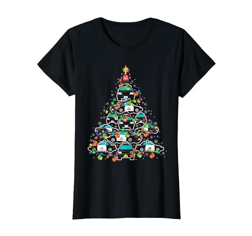 Xmas Tree Police Car Xmas Lights Santa Police Car Driver T-Shirt, Women, Black, Large