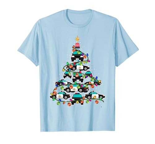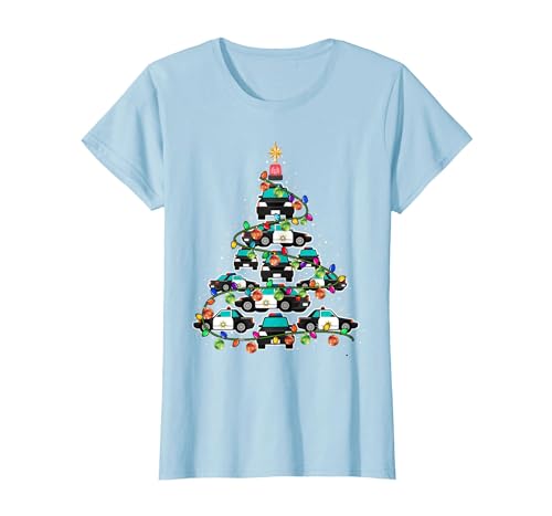 Xmas Tree Police Car Xmas Lights Santa Police Car Driver T-Shirt, Women, Baby Blue, Medium