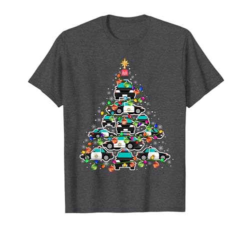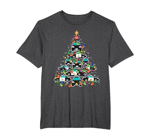 Xmas Tree Police Car Xmas Lights Santa Police Car Driver T-Shirt, Men, Dark Heather Grey, Medium