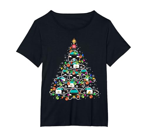 Xmas Tree Police Car Xmas Lights Santa Police Car Driver T-Shirt, Women's Plus, Black, 1X