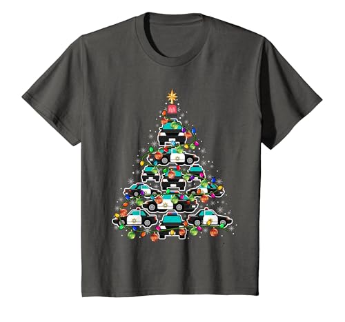 Xmas Tree Police Car Xmas Lights Santa Police Car Driver T-Shirt, Youth, Asphalt Grey, Small