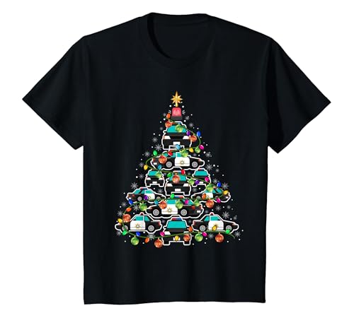 Xmas Tree Police Car Xmas Lights Santa Police Car Driver T-Shirt, Youth, Black, 3T