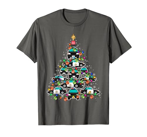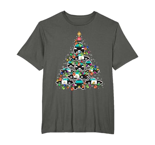 Xmas Tree Police Car Xmas Lights Santa Police Car Driver T-Shirt, Men, Asphalt Grey, Medium