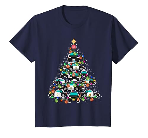 Xmas Tree Police Car Xmas Lights Santa Police Car Driver T-Shirt, Youth, Navy Blue, 3T