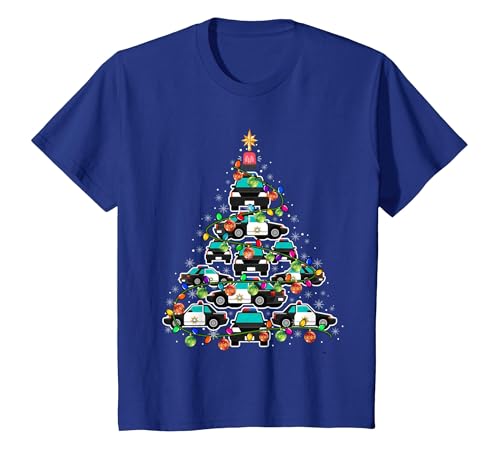 Xmas Tree Police Car Xmas Lights Santa Police Car Driver T-Shirt, Youth, Royal Blue, 3T
