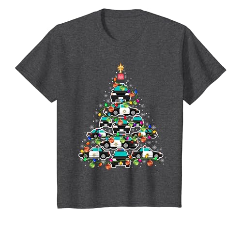 Xmas Tree Police Car Xmas Lights Santa Police Car Driver T-Shirt, Youth, Dark Heather Grey, 4T