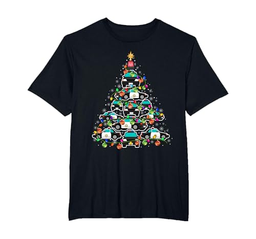 Xmas Tree Police Car Xmas Lights Santa Police Car Driver T-Shirt, Men, Black, Large
