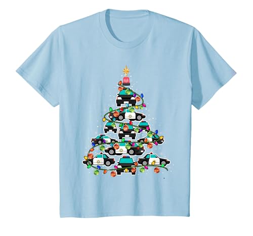 Xmas Tree Police Car Xmas Lights Santa Police Car Driver T-Shirt, Youth, Baby Blue, Medium