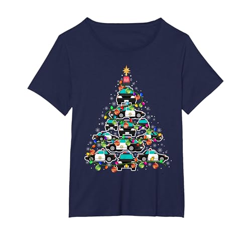 Xmas Tree Police Car Xmas Lights Santa Police Car Driver T-Shirt, Women, Navy Blue, 3X-Large