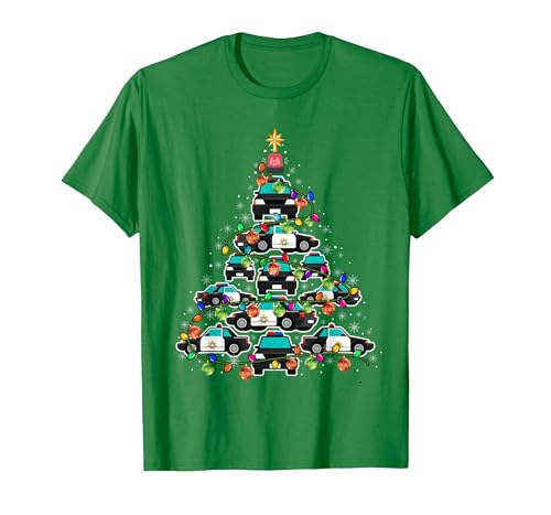 Xmas Tree Police Car Xmas Lights Santa Police Car Driver T-Shirt, Men, Kelly Green, Medium