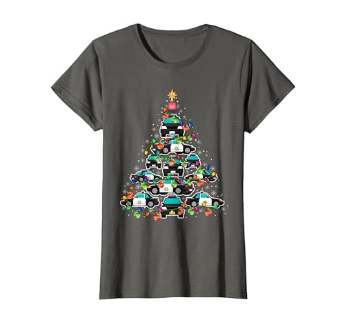 Xmas Tree Police Car Xmas Lights Santa Police Car Driver T-Shirt, Women, Asphalt Grey, X-Large