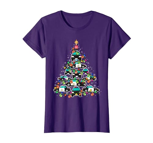 Xmas Tree Police Car Xmas Lights Santa Police Car Driver T-Shirt, Women, Purple, Small