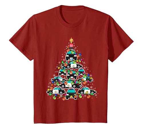 Xmas Tree Police Car Xmas Lights Santa Police Car Driver T-Shirt, Youth, Cranberry Red, Small