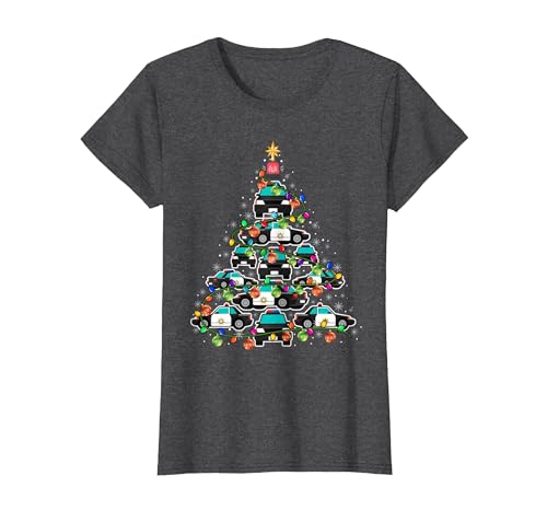 Xmas Tree Police Car Xmas Lights Santa Police Car Driver T-Shirt, Women, Dark Heather Grey, Medium