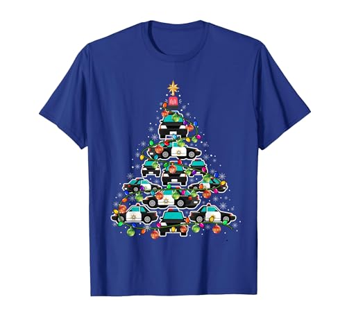 Xmas Tree Police Car Xmas Lights Santa Police Car Driver T-Shirt, Men, Royal Blue, Small