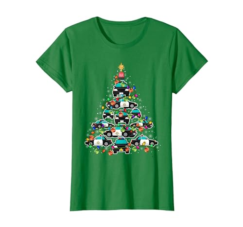 Xmas Tree Police Car Xmas Lights Santa Police Car Driver T-Shirt, Women, Kelly Green, Medium