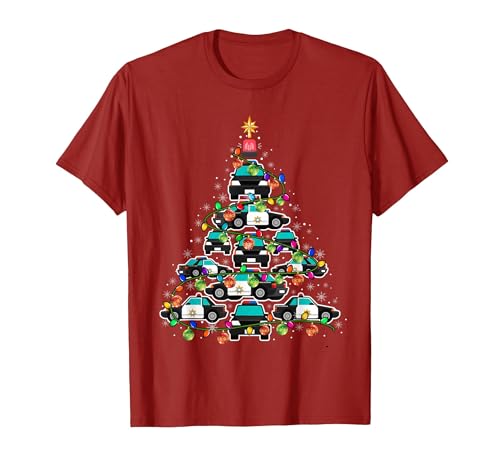 Xmas Tree Police Car Xmas Lights Santa Police Car Driver T-Shirt, Men, Cranberry Red, Medium