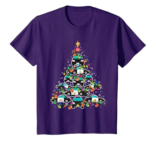 Xmas Tree Police Car Xmas Lights Santa Police Car Driver T-Shirt, Youth, Purple, Medium
