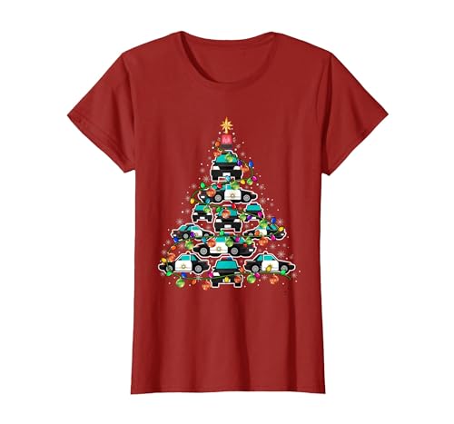 Xmas Tree Police Car Xmas Lights Santa Police Car Driver T-Shirt, Women, Cranberry Red, X-Small
