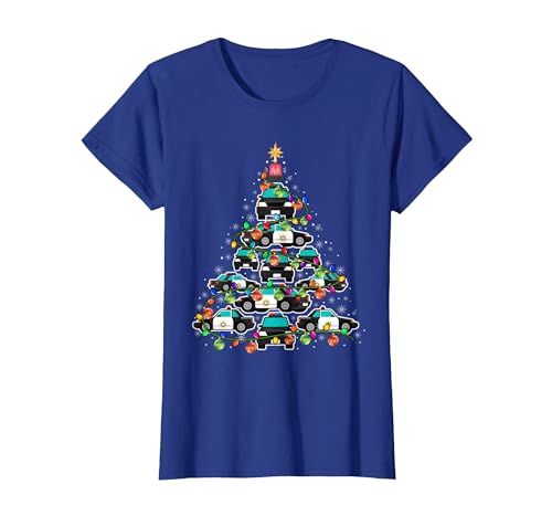Xmas Tree Police Car Xmas Lights Santa Police Car Driver T-Shirt, Women, Royal Blue, Large