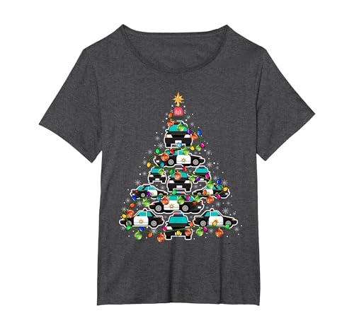 Xmas Tree Police Car Xmas Lights Santa Police Car Driver T-Shirt, Women, Dark Heather Grey, 3X-Large