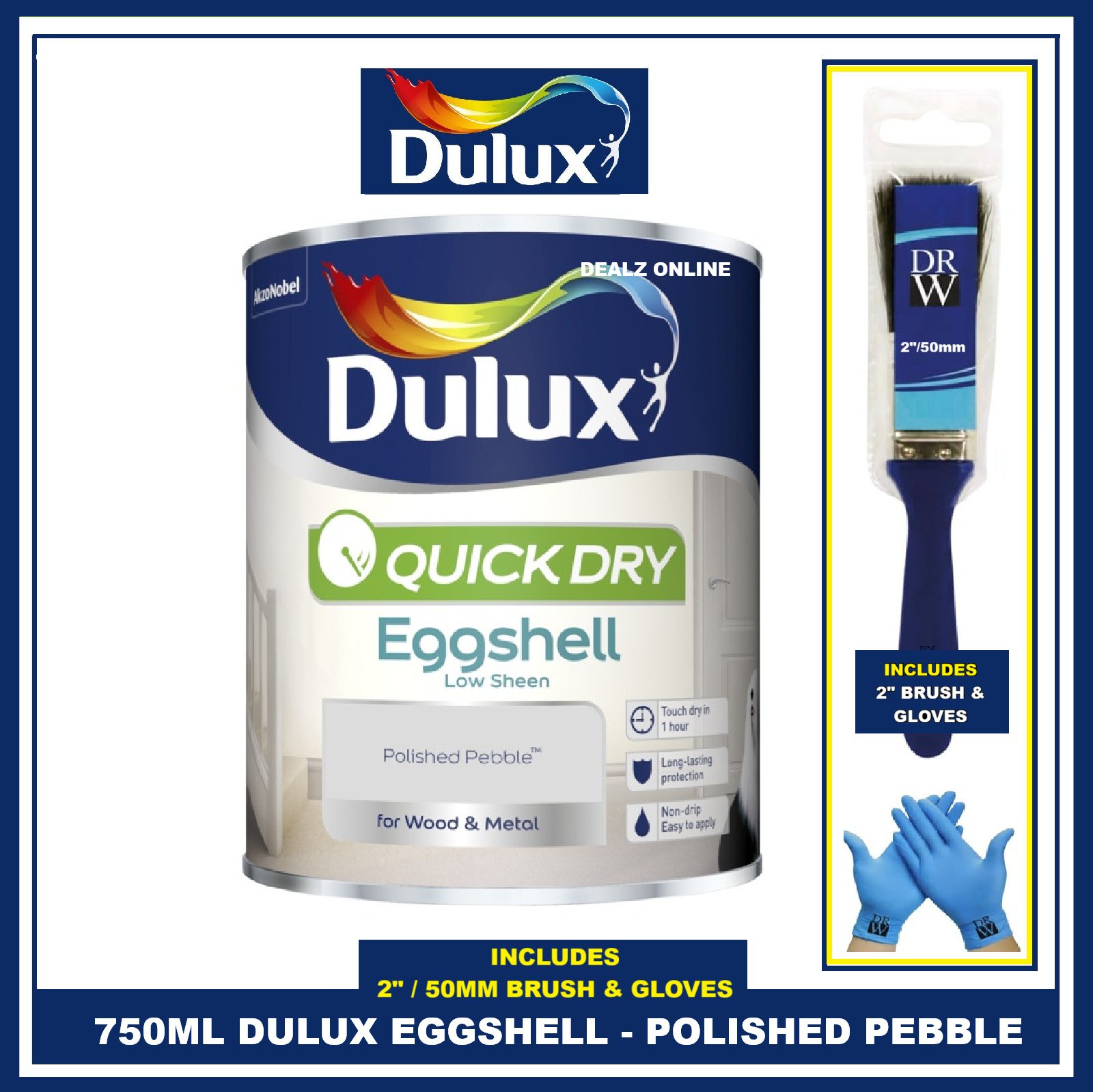 Dulux Quick Dry Polished Pebble 750ML Eggshell Paint FREE BRUSH & GLOVES