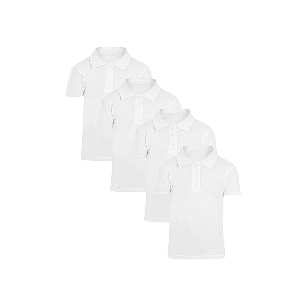 (6-7 Years, 4 Pack White) Panzy 2 or 4 Pack School Boys Girls Unisex Kids Quality White Short Sleeve Polo T-Shirt Age 3-9 yrs