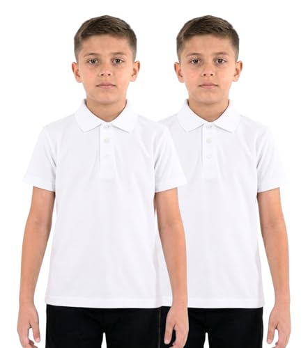 GW CLASSY OUTFIT Pack of 2X 4X 6X Girls Boys Polo White T Shirts (Mulitpacks) Unisex Kids Plain Polo Neck Tops Short Sleeve Kids T-Shirts School Tops Uniform PE Gym (6-7, 2X White)