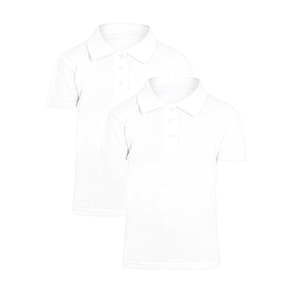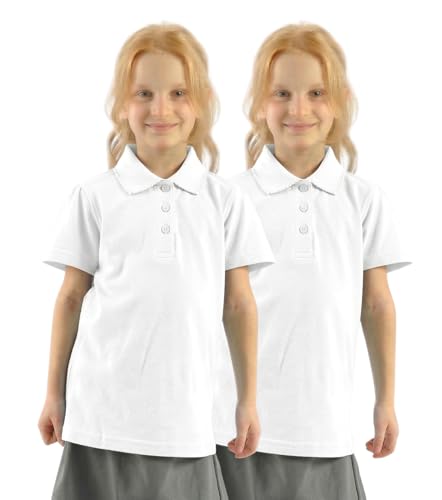 GW CLASSY OUTFIT 2X Girls Polo Shirts (Pack of 2) Short Sleeve Girls School Uniform Polo T-Shirts PE Tops 4-13 Years (6-7 Years, 2X White)