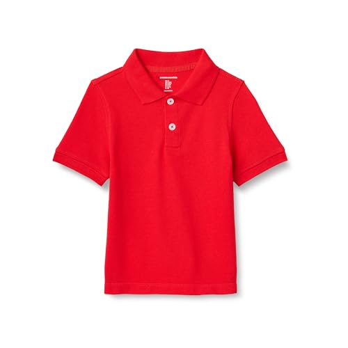 Amazon Essentials Boys' Uniform Short Sleeve Pique Polo Shirt, Bright Poppy Red, 6-7 Years