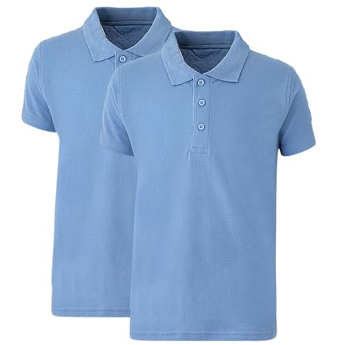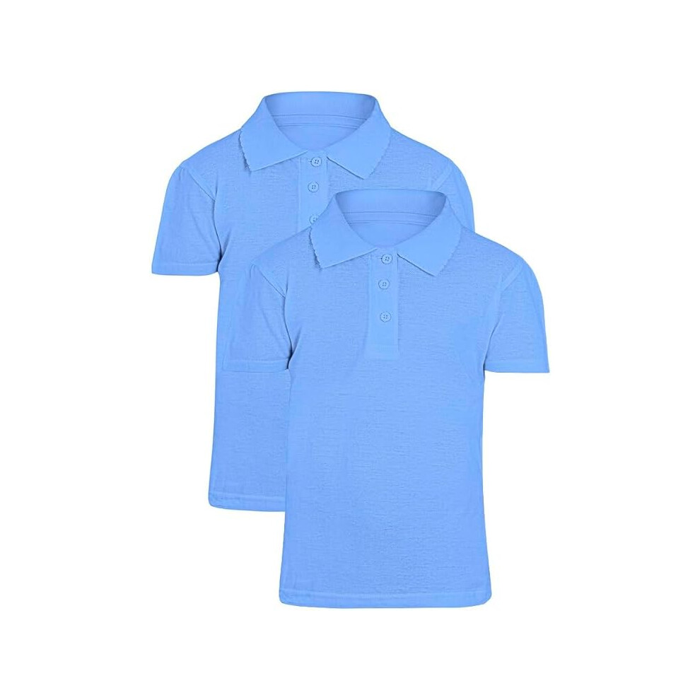 GW CLASSY OUTFIT 2X Girls Polo Shirts (Pack of 2) Short Sleeve Girls School Uniform Polo T-Shirts PE Tops 4-13 Years (6-7 Years, 2X Blue)
