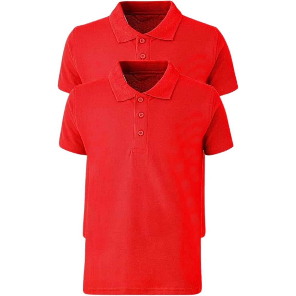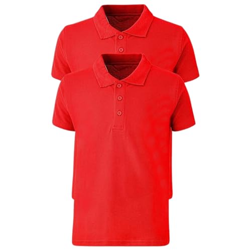 GW CLASSY OUTFIT Pack of 2X 4X 6X Girls Boys Polo RED T Shirts (Mulitpacks) Unisex Kids Plain Polo Neck Tops Short Sleeve Kids T-Shirts School Tops Uniform PE Gym (6-7 Years, 2X RED)